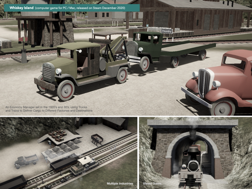We also write and publish ebooks about travel and exploration which are distributed on Apple Books, and create computer games which are distributed on Steam.